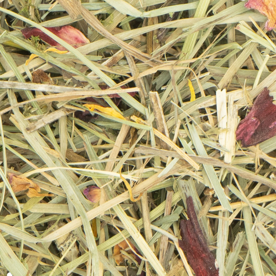 מרבד חציר טבעי ואכיל למכרסמים וארנבות ננסיות, מועשר בפרחי קיץ צבעוניים ועשבי שדה ארומטיים. מספק שילוב מושלם של מזון, תעסוקה והעשרה טבעית. מתאים לשימוש כמשטח לעיסה או כחטיף בריא לשמירה על שיניים תקינות ועל פעילות טבעית יומיומית.